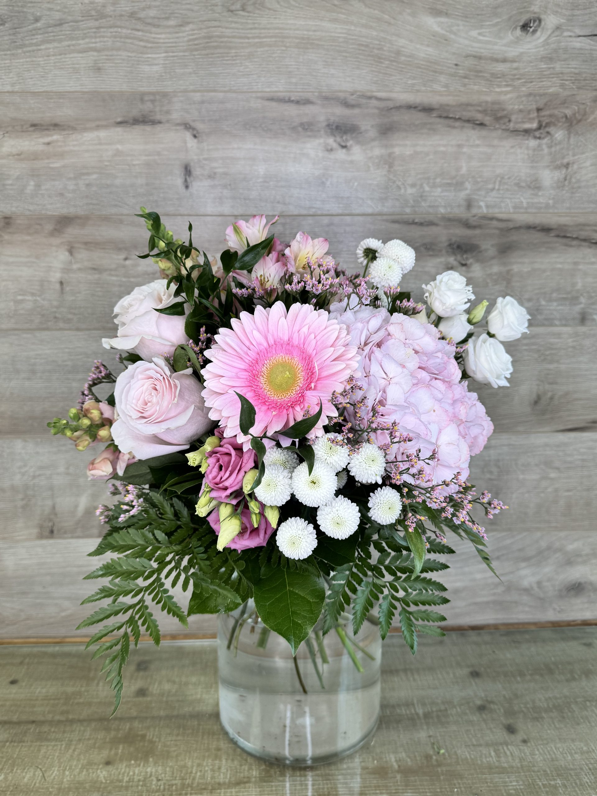 Un bouquet tout en douceur, composé de fleurs pastel. Une création délicate et lumineuse qui apporte une touche de tendresse à n’importe quel espace.