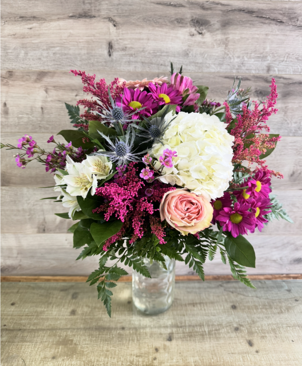 Offrez un bouquet aux couleurs roses éclatantes qui dénotent la romance, la passion et l’amour! Un bouquet rond qui donne de l’impact et qui assurera de beaux souvenirs fleuries!